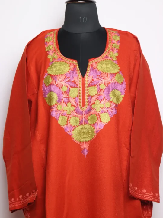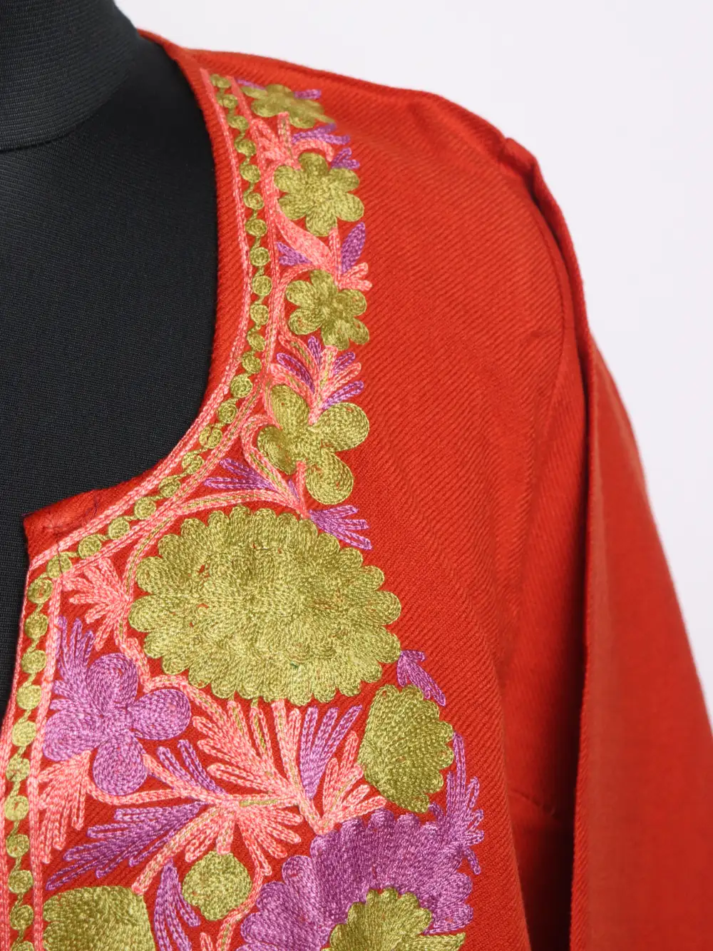Made in cashmilon wool, this piece has beautiful flloral aari kadhai that stays gives it a decent and modern look.