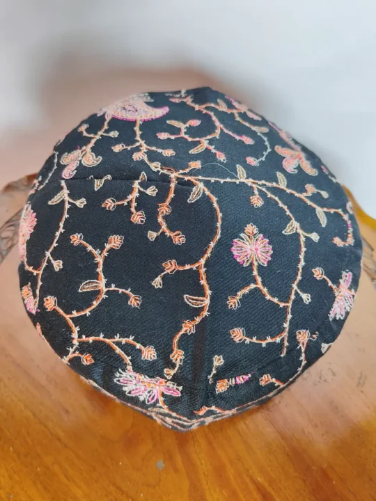 This Topi carries Kashmiri aari embroidery showing fine floral patterns. Topi offers warmth, soft feel, and all season comfort, suited for daily wear, prayers, and gatherings, adding graceful traditional charm for men.