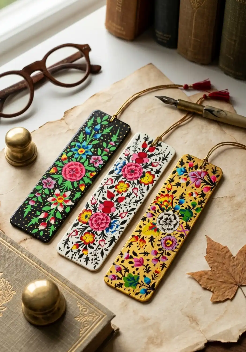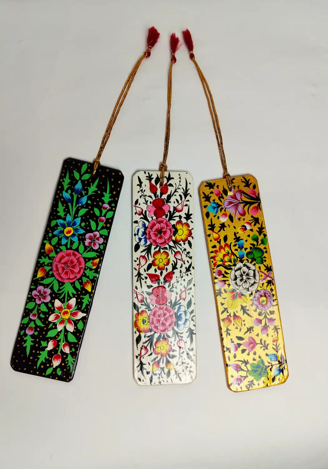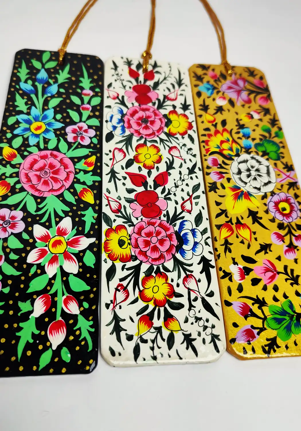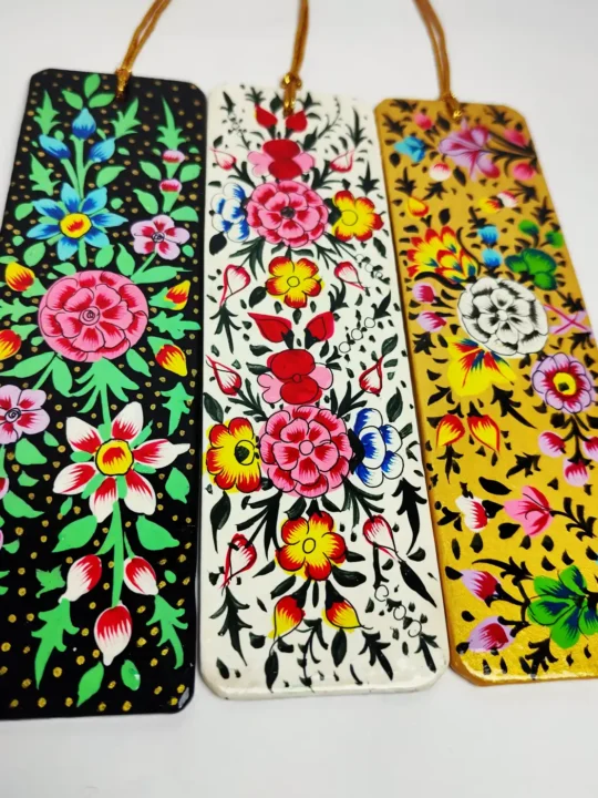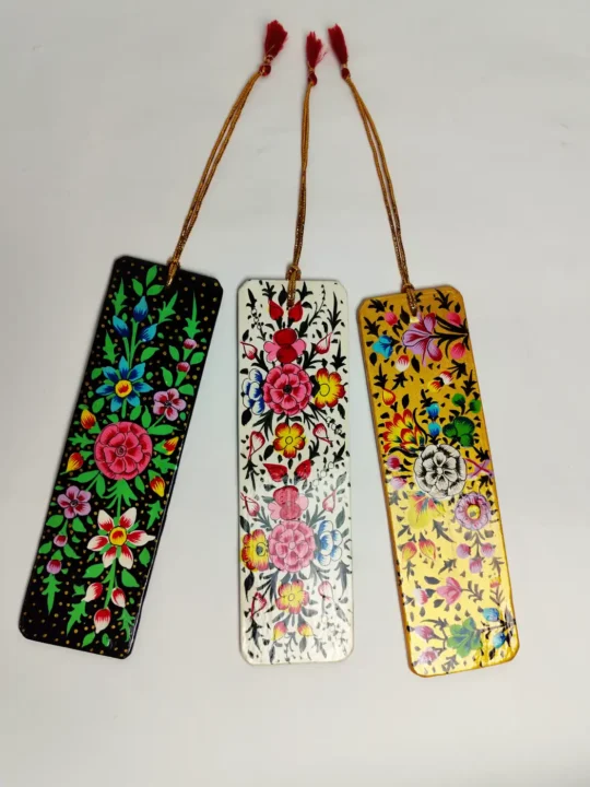 Delicately shaped and finished with traditional paper machie work, this set of 3 bookmarks carry vibrant floral detailing inspired by Kashmiri artistry. The fine patterns bring life to every page you pause at. Lightweight yet graceful, it adds a cultural touch to your reading moments.