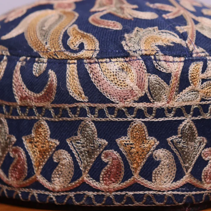 With a name that recalls the golden twilight of Srinagar’s old city, this blue Shaam-i-Shehr cap is poetry made wearable. It’s made from soft, warm Toosha and delicately embroidered with all-over Aari work. Worn on a brisk evening or on eid, it carries the the love of kashmirihood