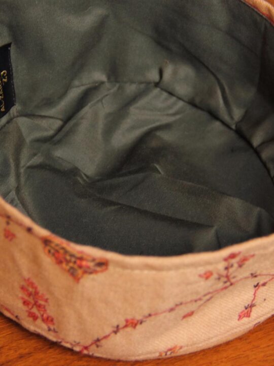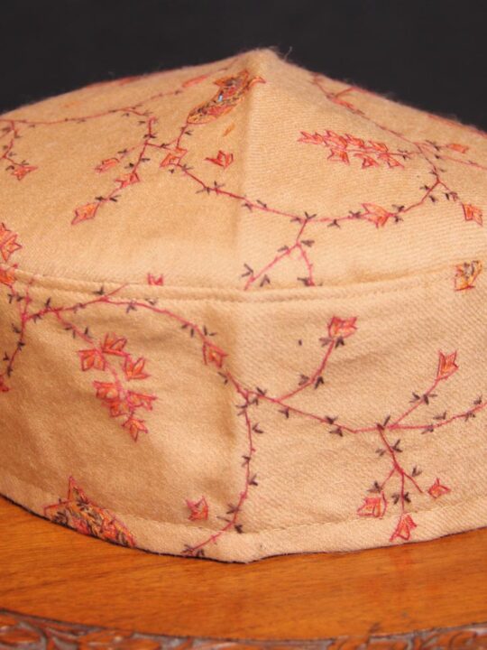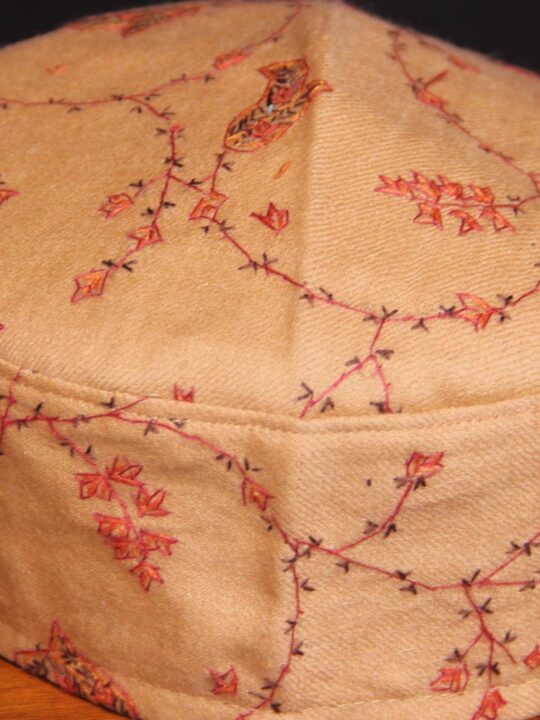 This is a beautiful raffal fabric cap with sozni handwork