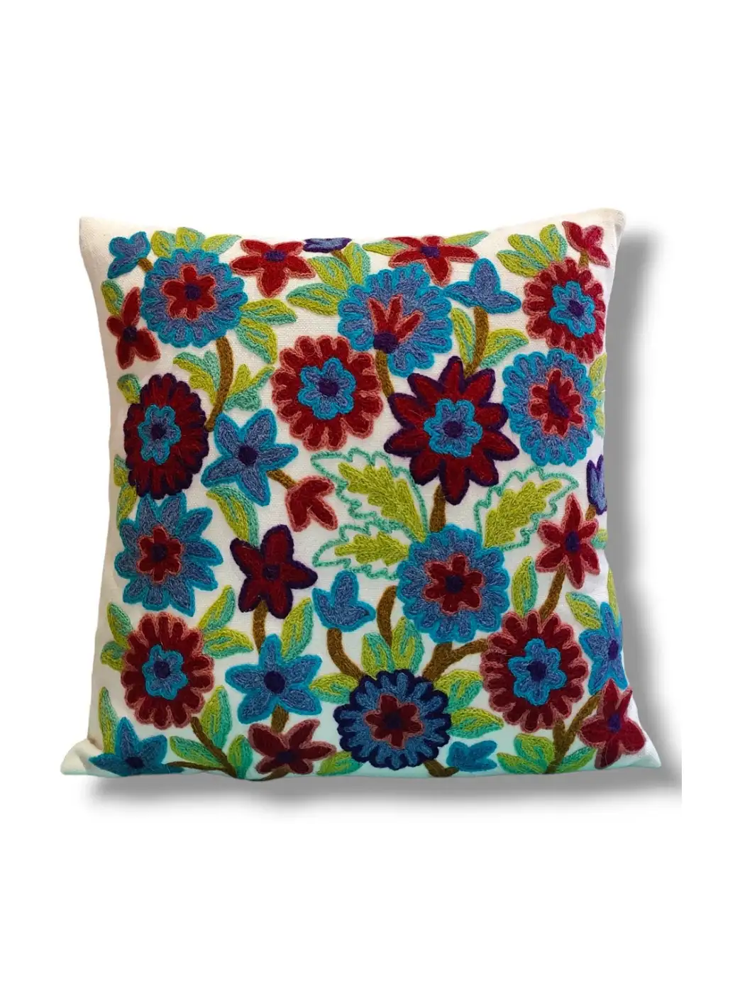 Shami Kashmiri Hand Embroidery Crewel Cushion Cover - Set of 2 (16x16 Inches)