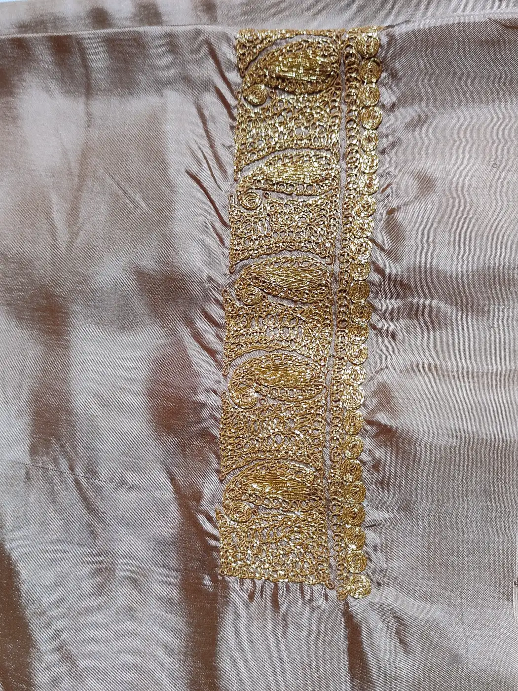 Botte tilla embroidery at the neckline brings focus to this dark blue kameez, while the beige trouser and dupatta that is finished with line detailing along its borders. This traditional Kashmiri suit 3pc set includes kameez, salwar, and dupatta which have been kept unstitched for your preferred fit.