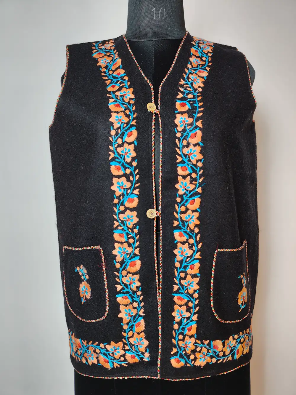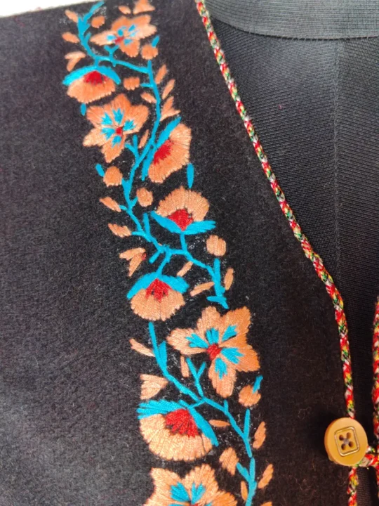 Created from blazer tweed to manage winter chill, thgis women’s Coat comes in black colour. It features floral aari embroidery which enriches border and vertical front panel.