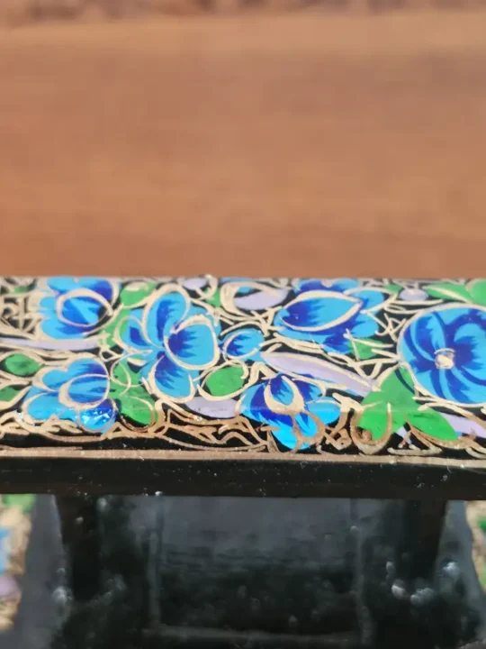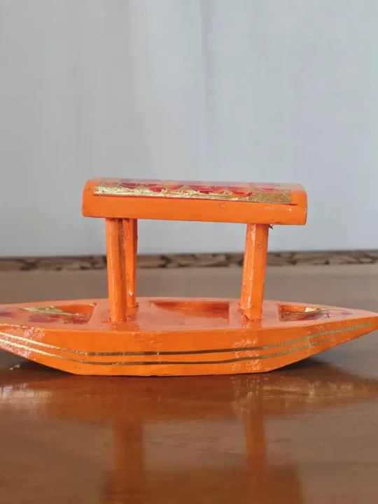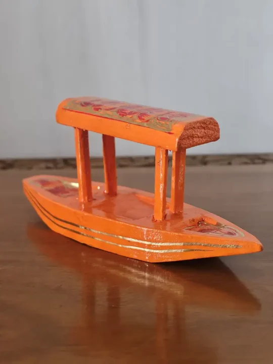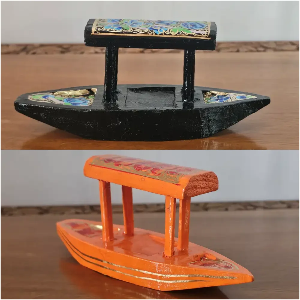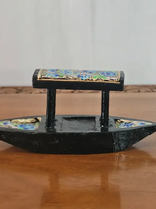 This small paper machie shikara brings a piece of Dal Lake right into your home . Handcrafted in Srinagar and painted with delicate blue floral patterns, it captures the charm of Kashmiri boat rides in miniature. Whether placed on a shelf or gifted to someone who loves Kashmir, it adds a gentle story of culture, calm, and craftsmanship to any corner