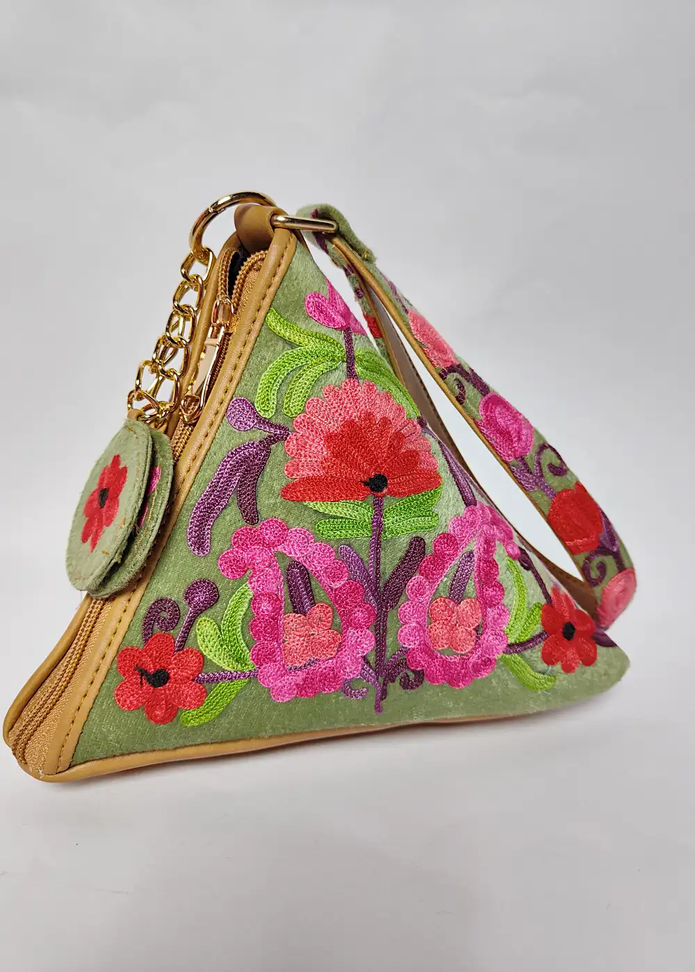 Green Triangle Potli Bag with Zari Embroidery Mahjabeen