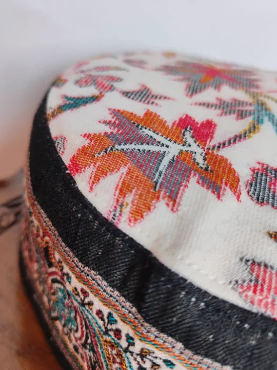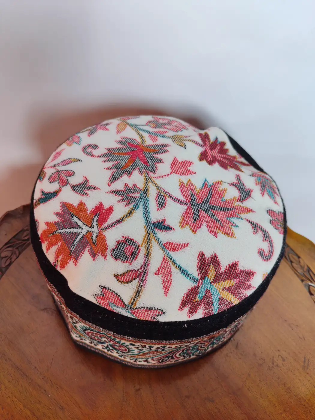 Designed in white Kani shawl weaving, this lightweight caps show Kashmiri artistry through detailed woven motifs. It is lightweight cap which bring gentle feel.