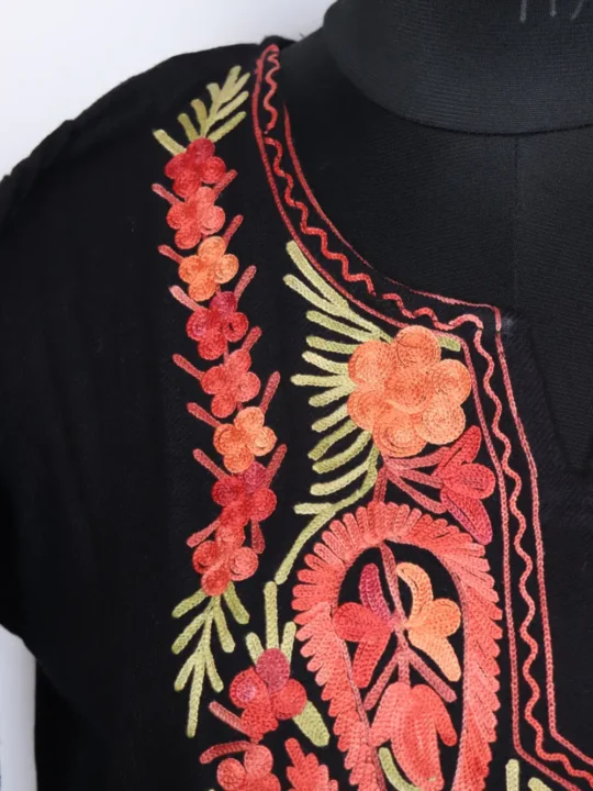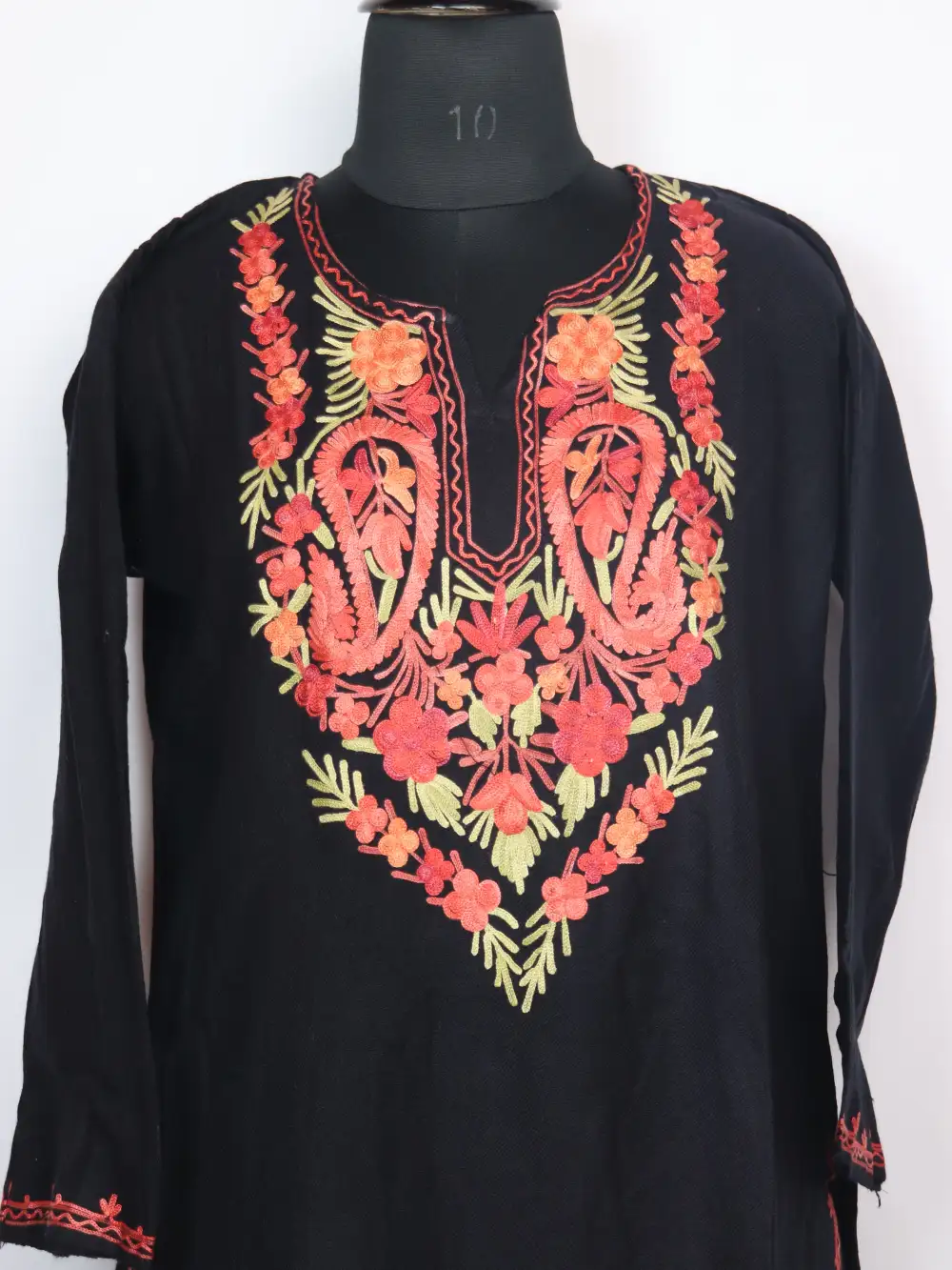 A comfortable long kurti in a classic Black color, comes with gracefuk badam floral kadhai that keeps the overall look classy and decent.