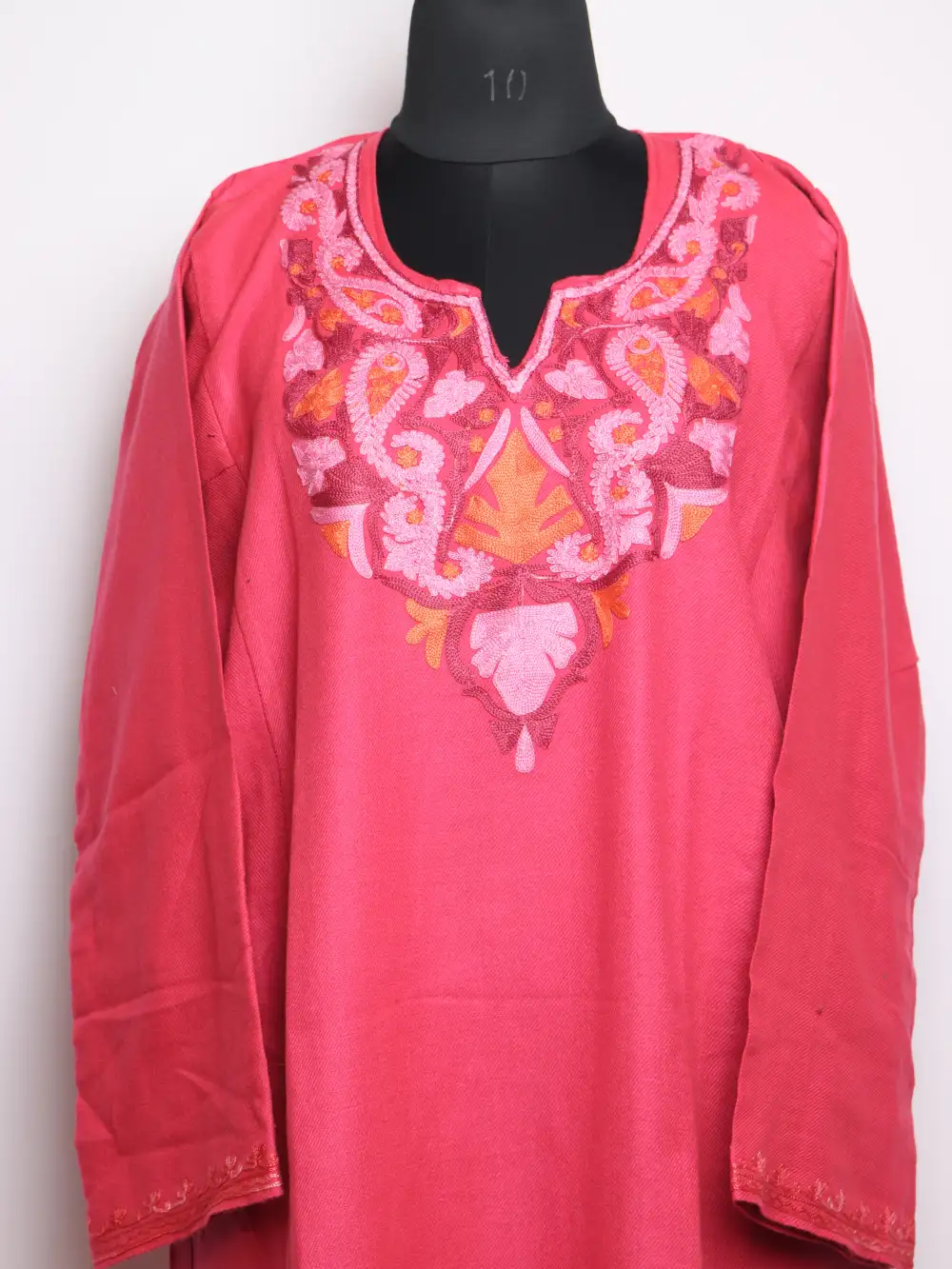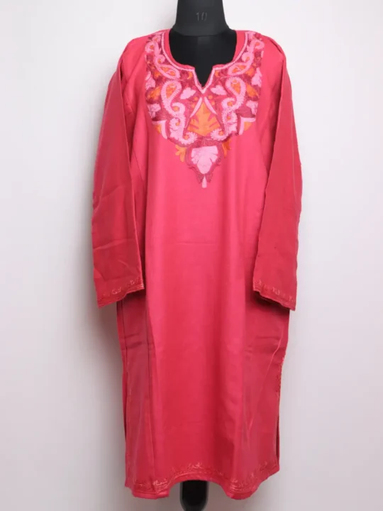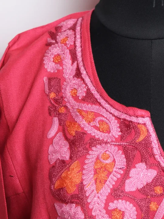 Badam and chinari Aari embroidery adds a gentle Kashmiri touch to this comfortable and warm cashmilon wool.