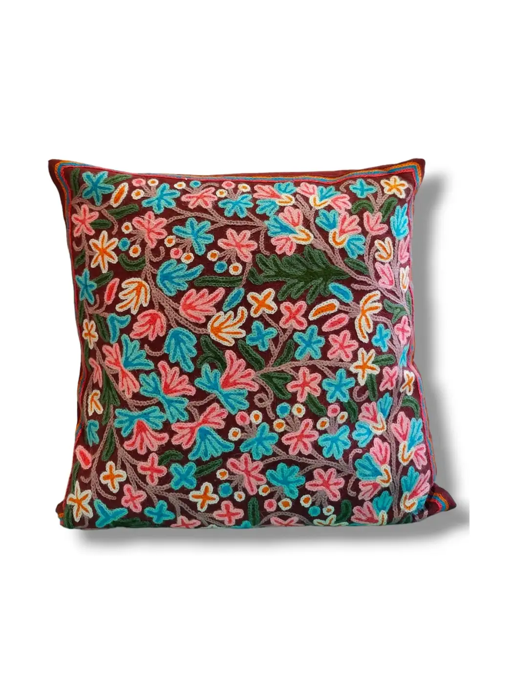 Revitalize your home decor with our Set of 2 Decorative Cotton Throw/Pillow Cushion Covers featuring charming Kashmiri Crewel Embroidery. Made from premium cotton and wool, these 16 x 16-inch cushion covers effortlessly elevate the style of your sofa or living room. The detailed craftsmanship of Kashmiri Crewel Embroidery adds a touch of elegance, making this crewel cushion cover Set a perfect blend of comfort and sophistication.