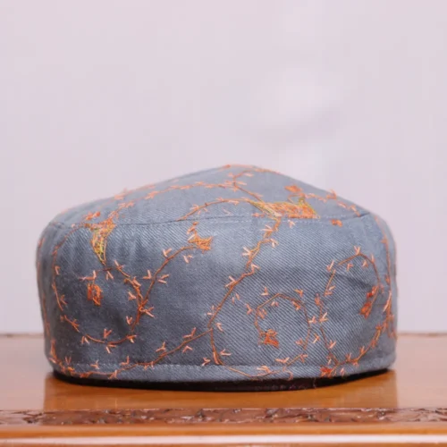 Kashmiri Beige Wool Aari Embroidery Wool Cap